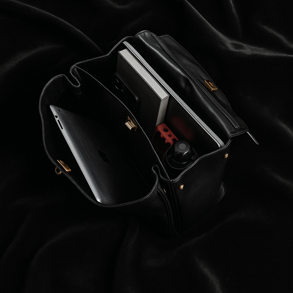 Wir wollten die Leder-Version von Moira: eine klare Tasche, die ihre Form behält, wenn der Tag sich dehnt. Glattes Leder, schlanker Griff, Schmuckverschluss zum schnellen Schließen. Innen findet alles seinen Platz, außen schreit nichts.