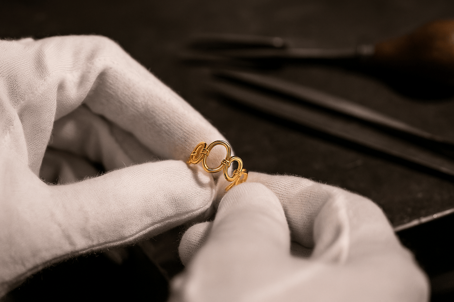 Carezza naît d’un souvenir d’enfance : les longues chaînes dorées que l’on trouvait dans les boîtes à bijoux des mères méditerranéennes. Des maillons comme des embruns figés, une douceur à jamais gravée. La collection Mediterranea revisite cette mémoire avec simplicité et force : chaque bague évoque un lien, un port d’attache, un souffle chaud au creux de la main.