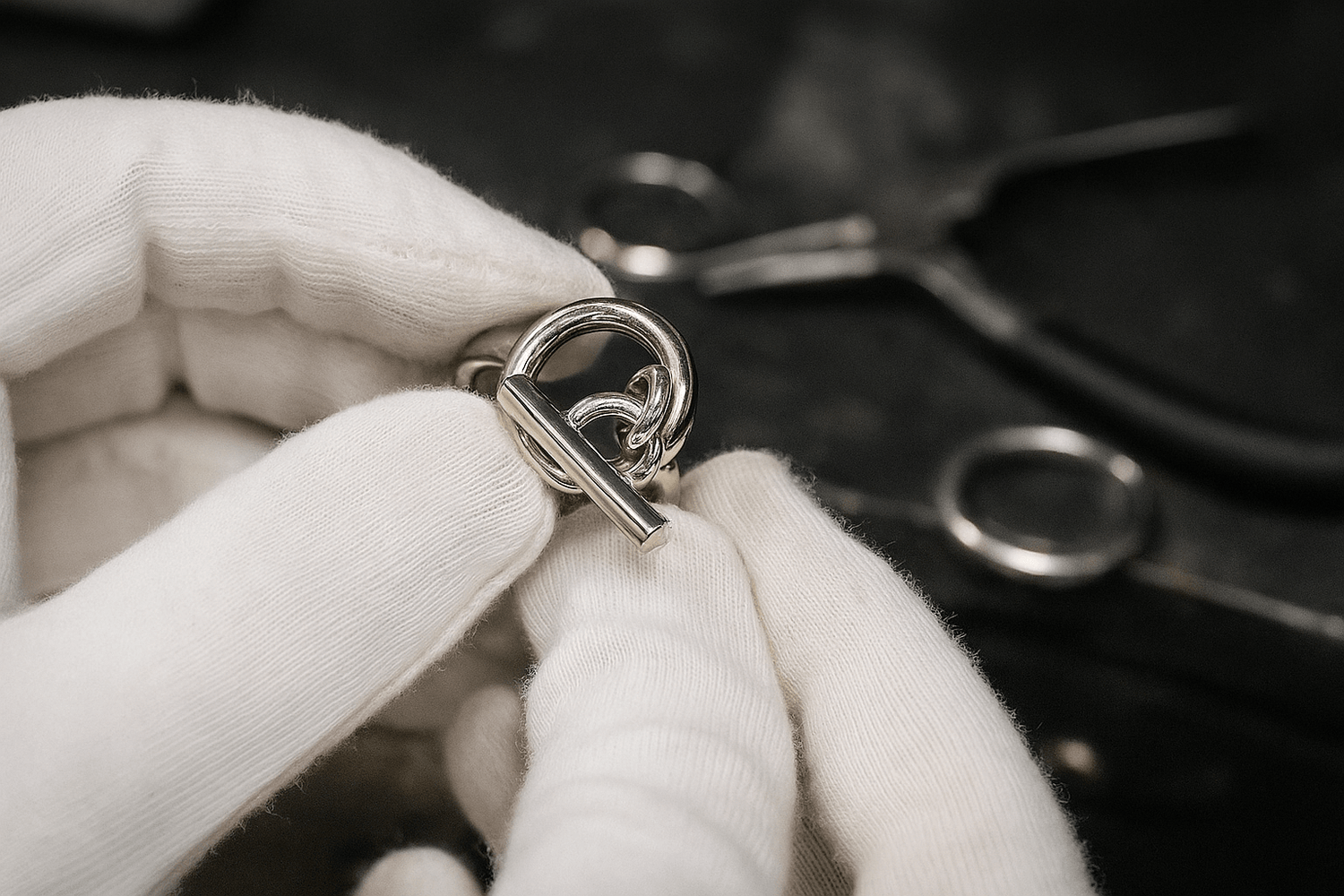 Détail : fermoir décoratif inspiré des chaînes de joaillerie