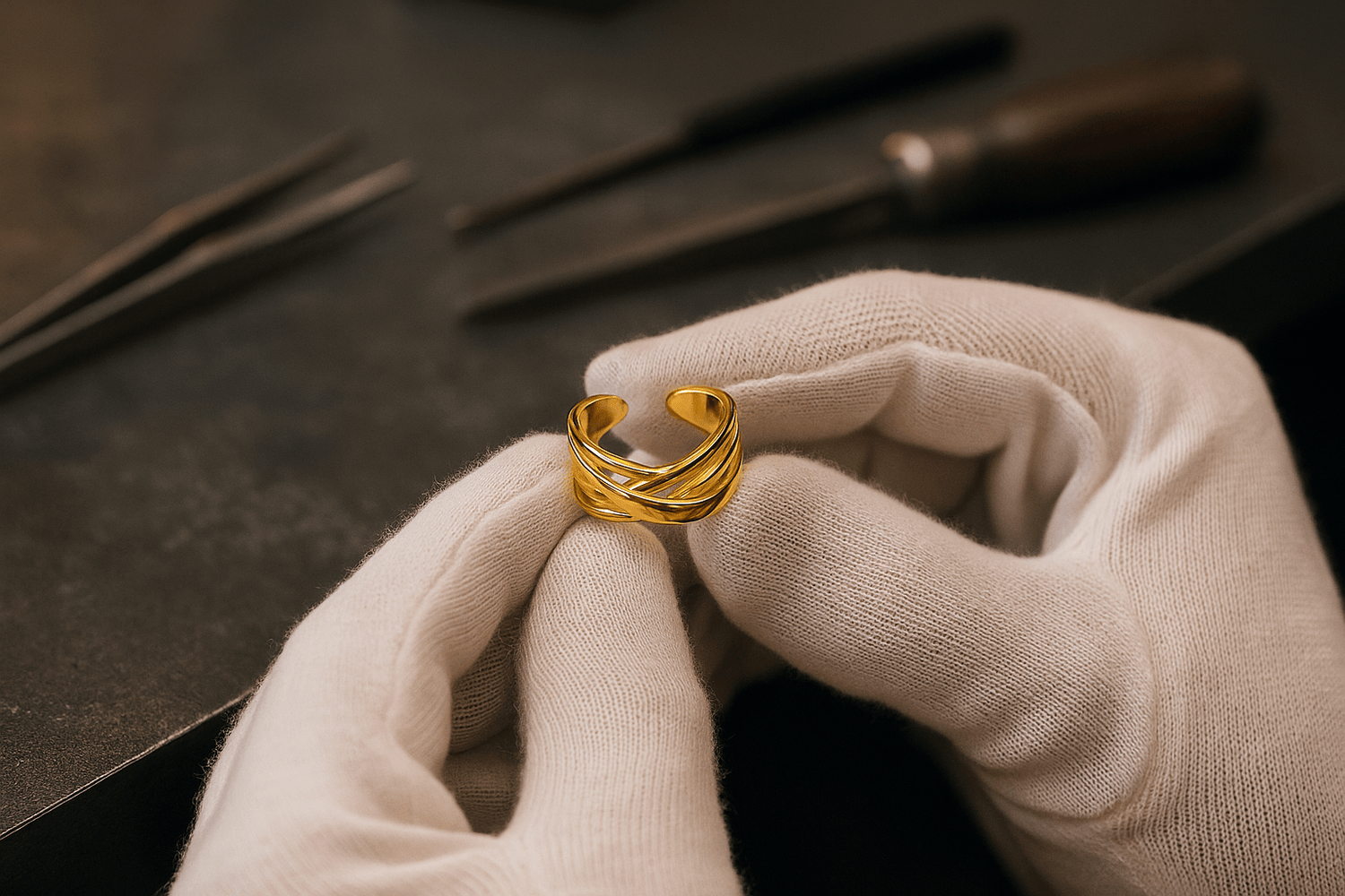 Bague Sogno – Plaqué or 14k & anneaux croisés