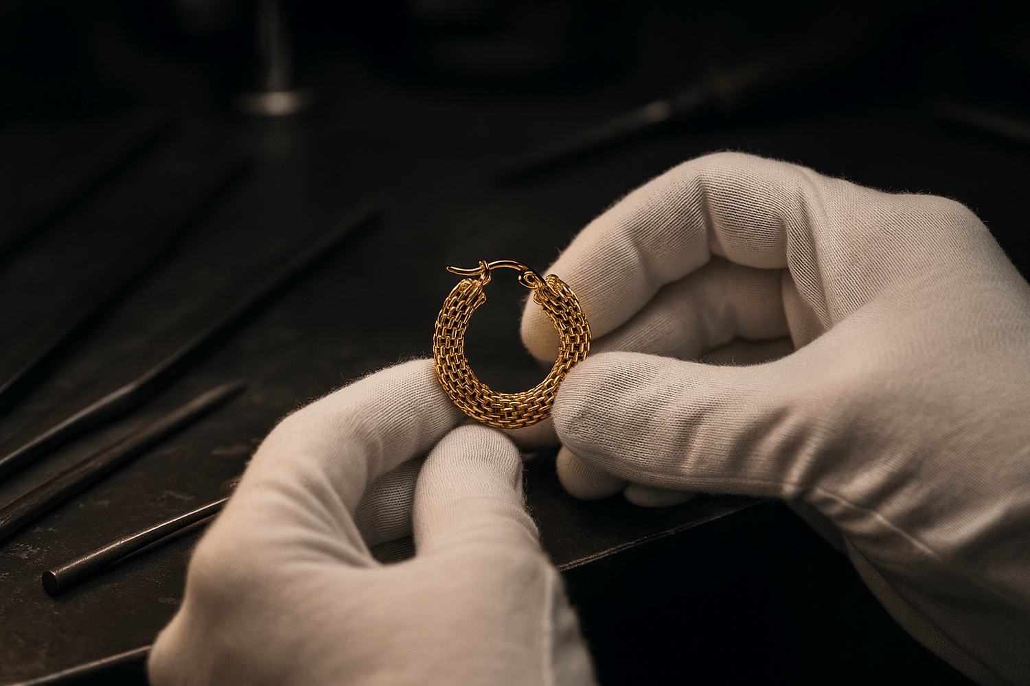 Boucles d’oreilles Albero – Créoles tressées en acier plaqué or 18K