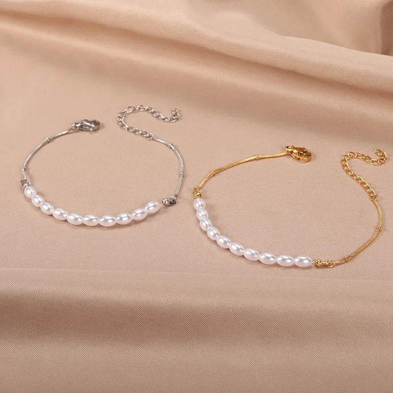 Bracelet Credenza – Perles blanches & plaqué or ou argent