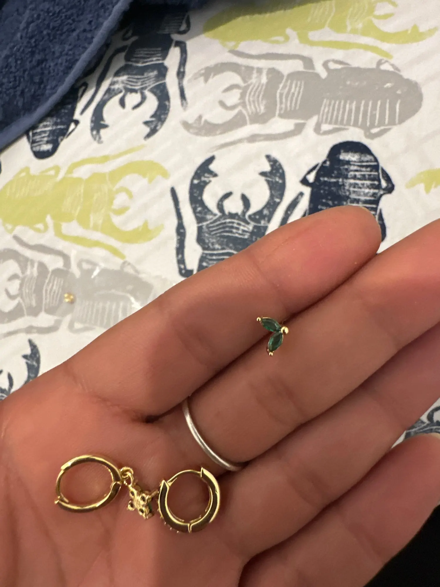 Boucles d'oreilles comme le montre la photo. Belle nuance d'or. Ils n'accrochent pas les cheveux. Je recommande de cœur.
