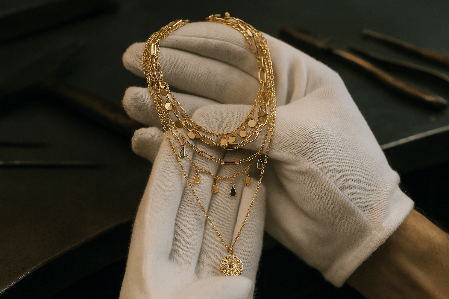Francesca évoque les marchés de Sicile, le son des rires sous les arcades, la lumière sur la peau. Ses chaînes s’entrelacent comme des souvenirs de voyage, à la fois délicats et vibrants.