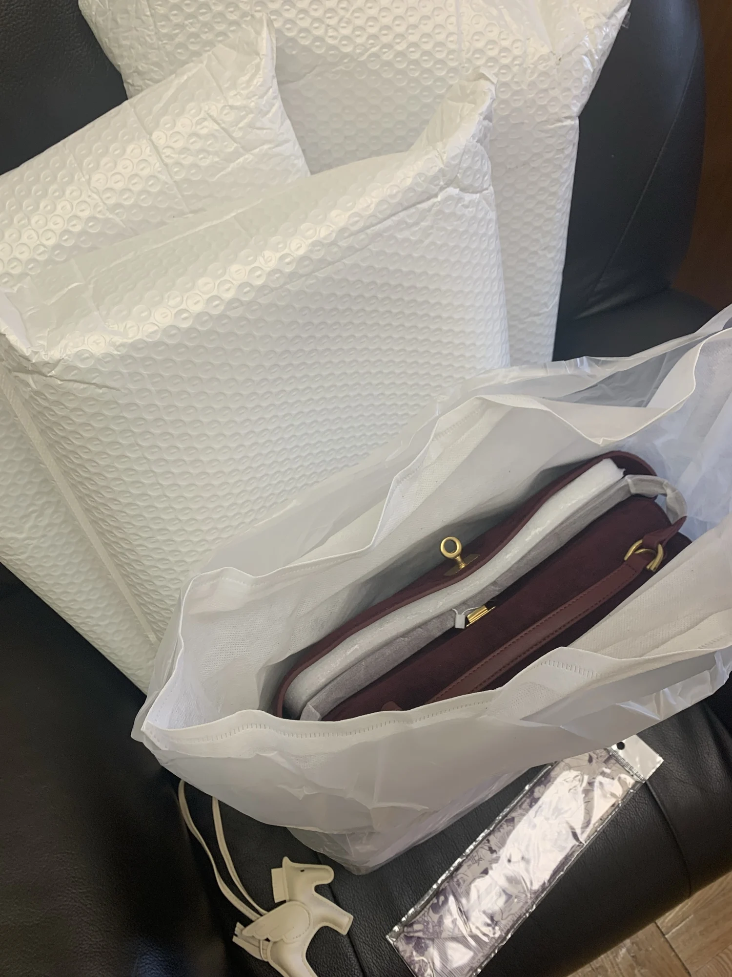 livraison rapide et soignée, sac reçu dans un sac en tissu très joli. Je recommande, le sac (j'ai choisi le vert) est sublime, matières très jolie (daim de très bonne qualité)