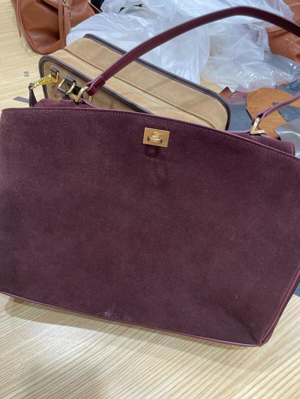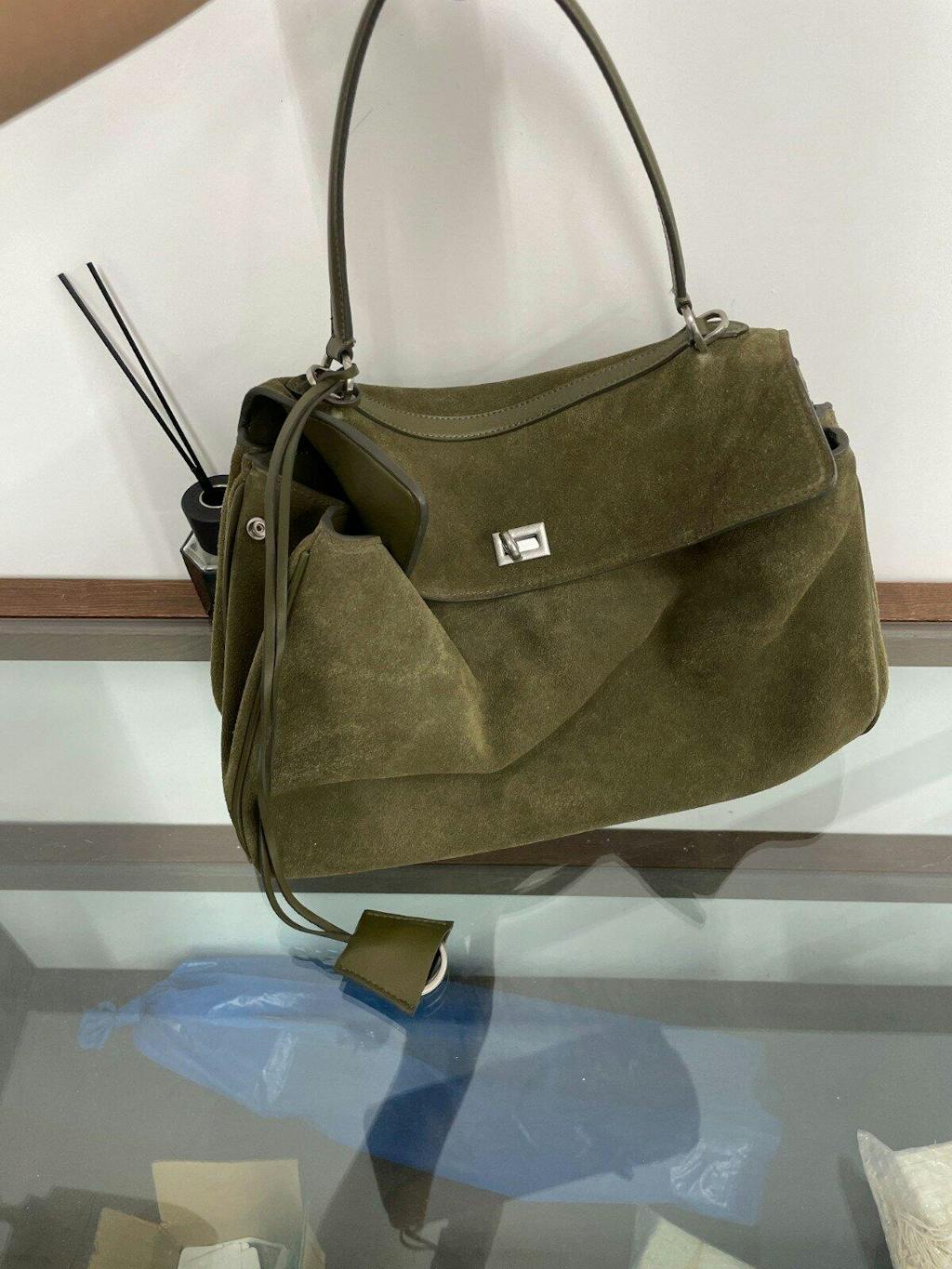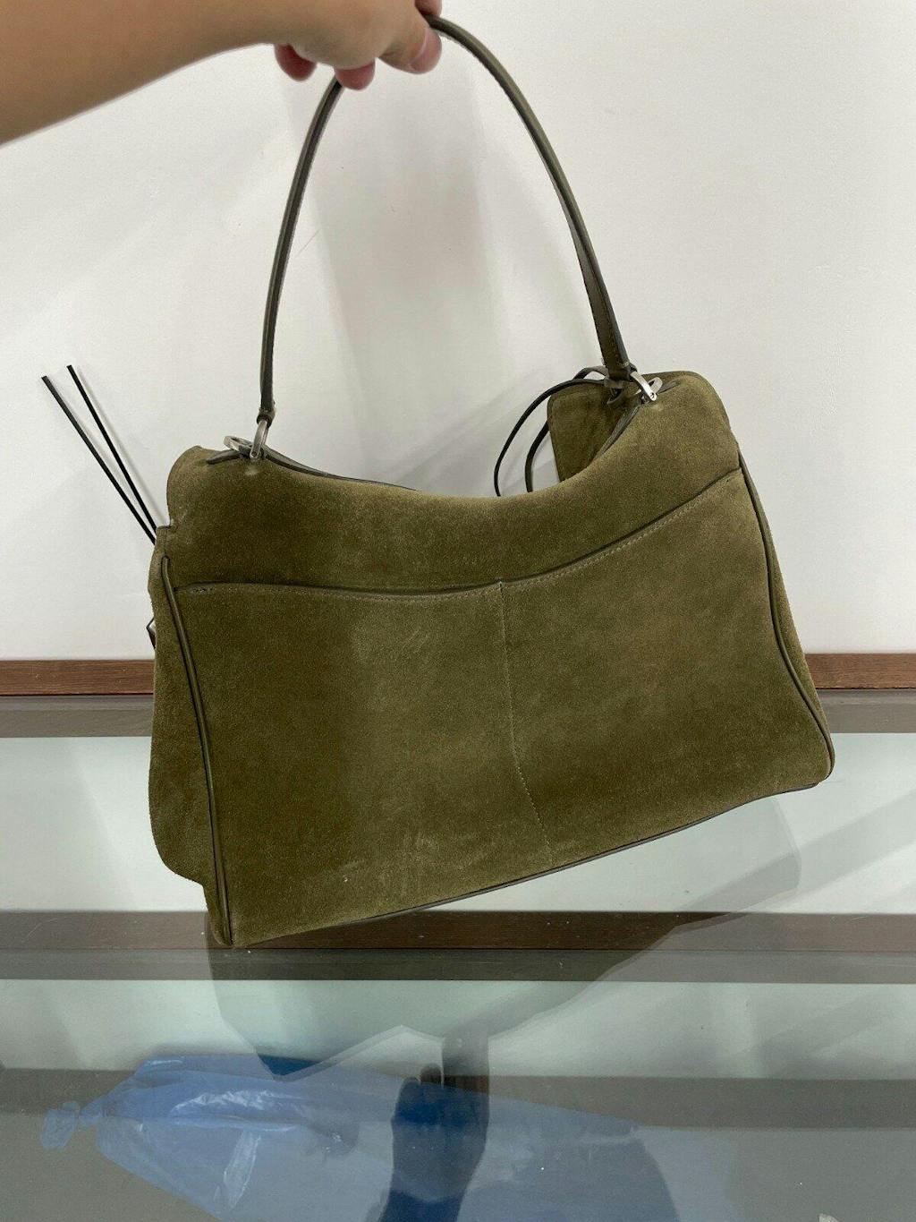 Gerçek deri astarlı süetten yapılmış olan bu çanta, ikonik modelle aynı kontrollü esnekliği ve formu koruyor. Yapısı stabil kalıyor, taşıması rahat, düzeni değişmiyor.